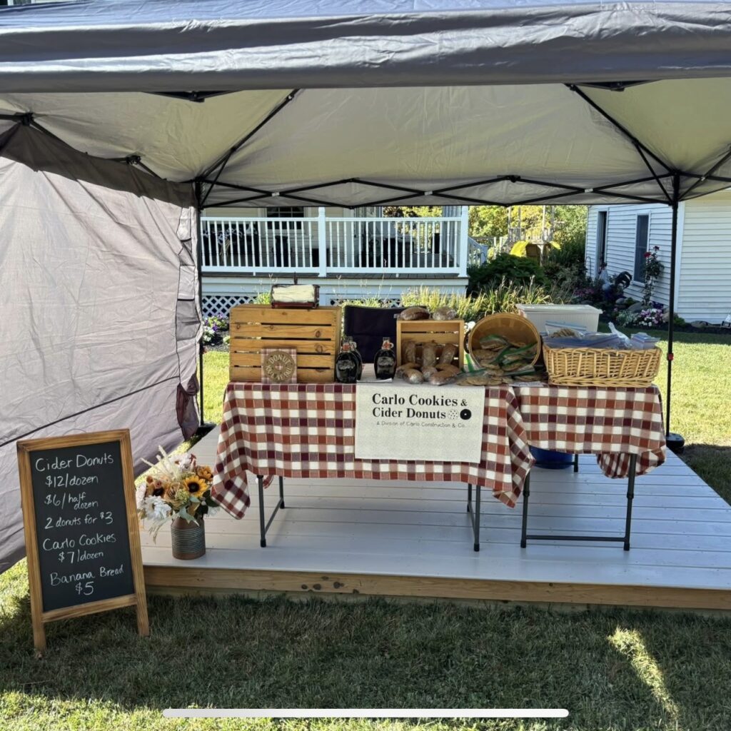 We’re a family of bakers and makers, two separate businesses sharing one stand during the fall season. Everything we sell is made fresh each weekend! During the brick oven’s off-season, Joe’sDough2Go is baking up our signature breads, bagels, English muffins, and scones. Alongside us, our family’s Carlo crew brings their amazing donuts, cookies, banana bread, syrup, and more. It’s all homemade, all fresh, and all from our family to yours.